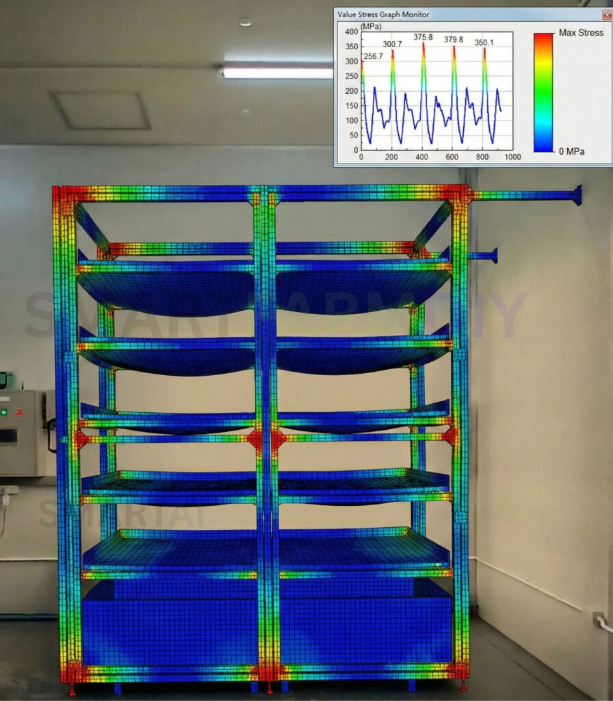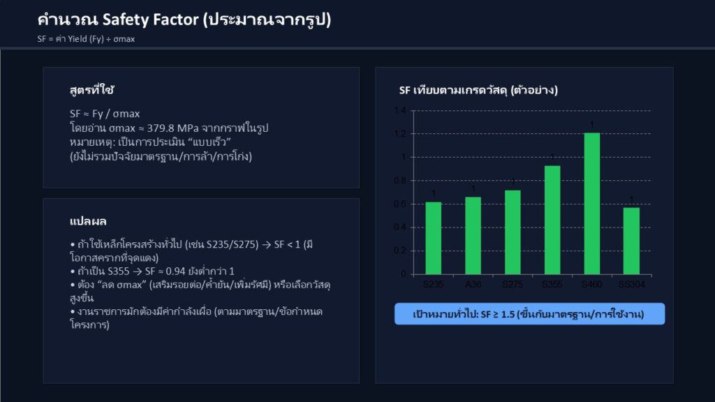 - 🔵 สีน้ำเงิน → ความเค้นต่ำ (ปลอดภัยมาก)
